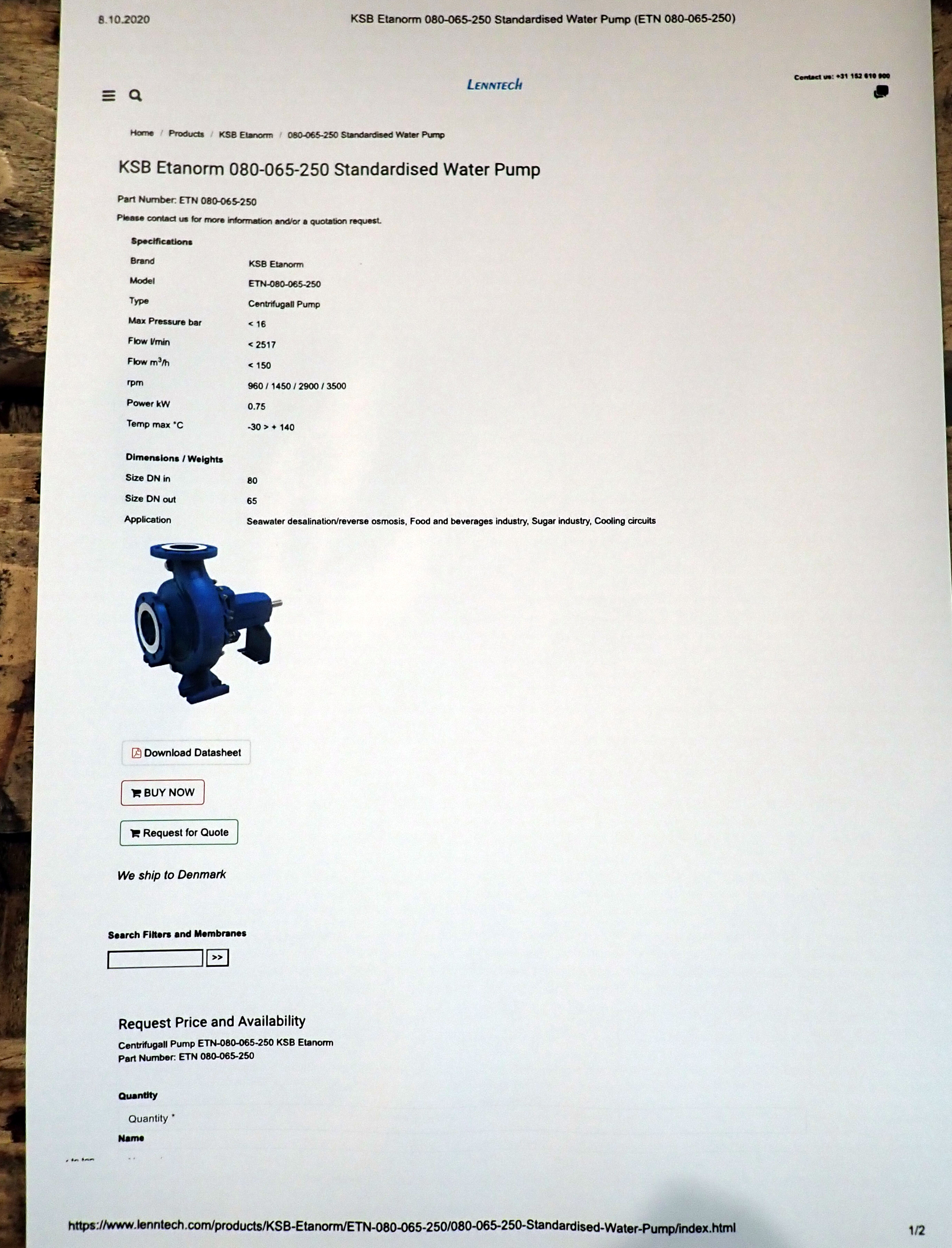 KSB - Etarnorm B 080-250 B10
