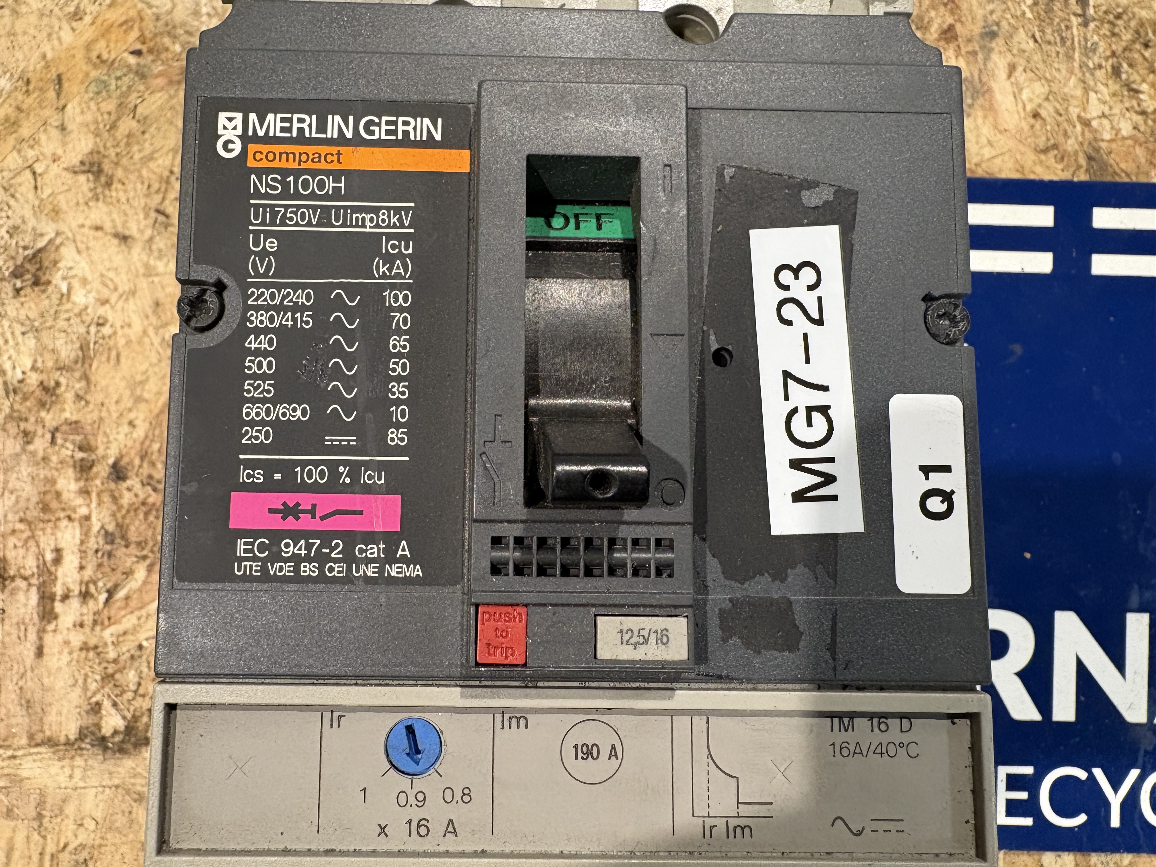 • Remark Merlin Gerin Compact . NS100H. TM16D . UIN 750V . 50/60 HZ . UIMP : 8 KV .