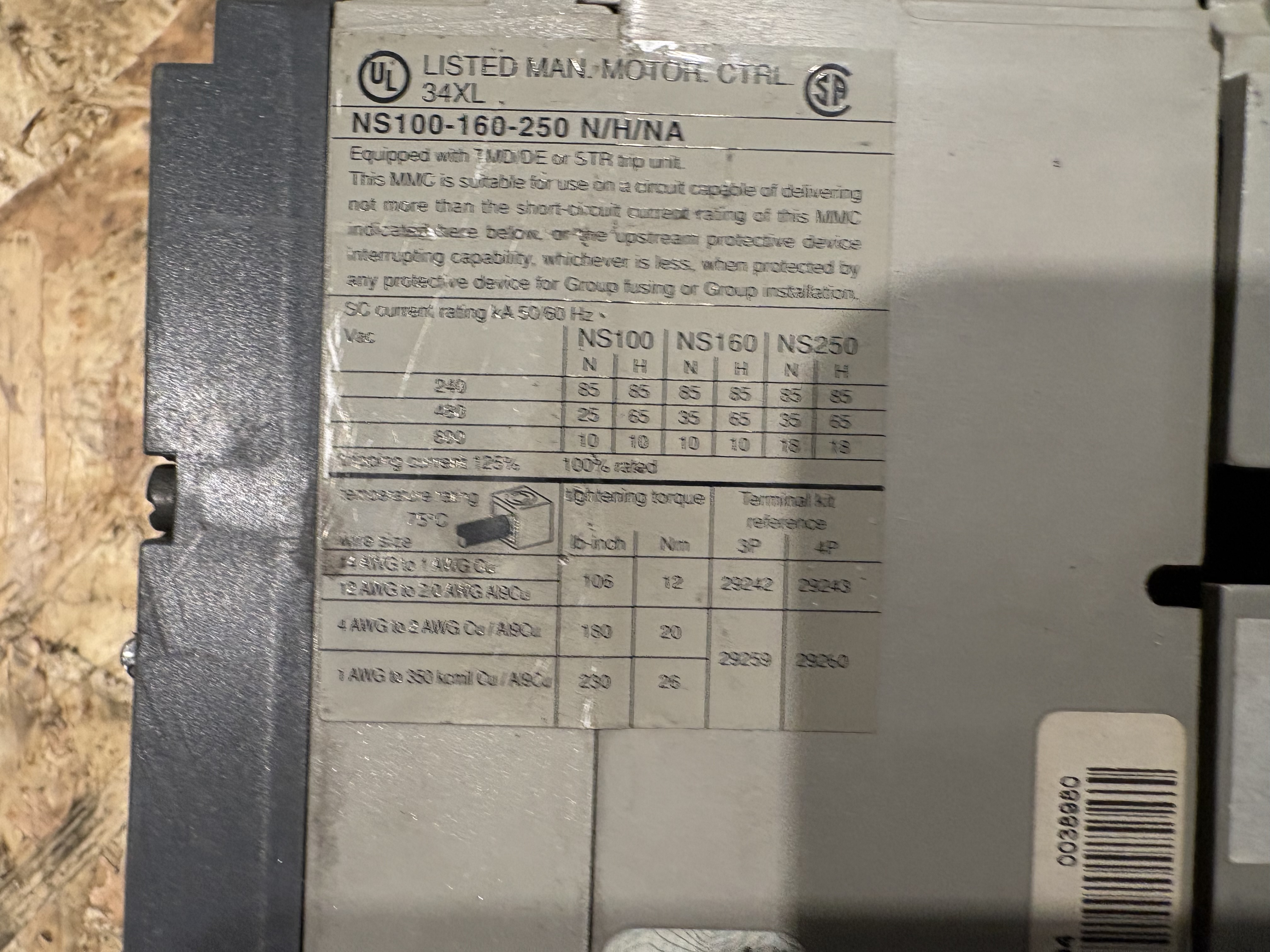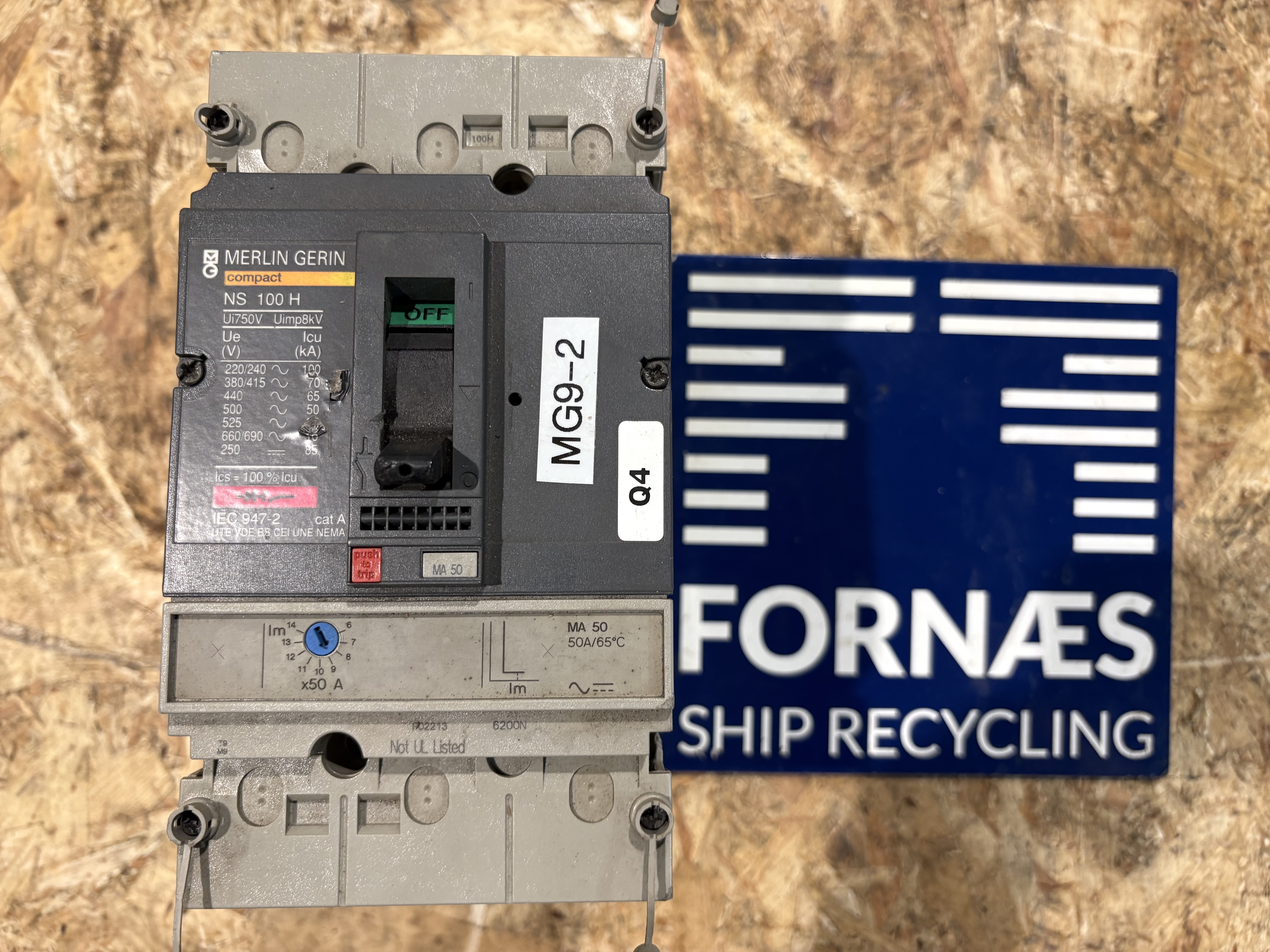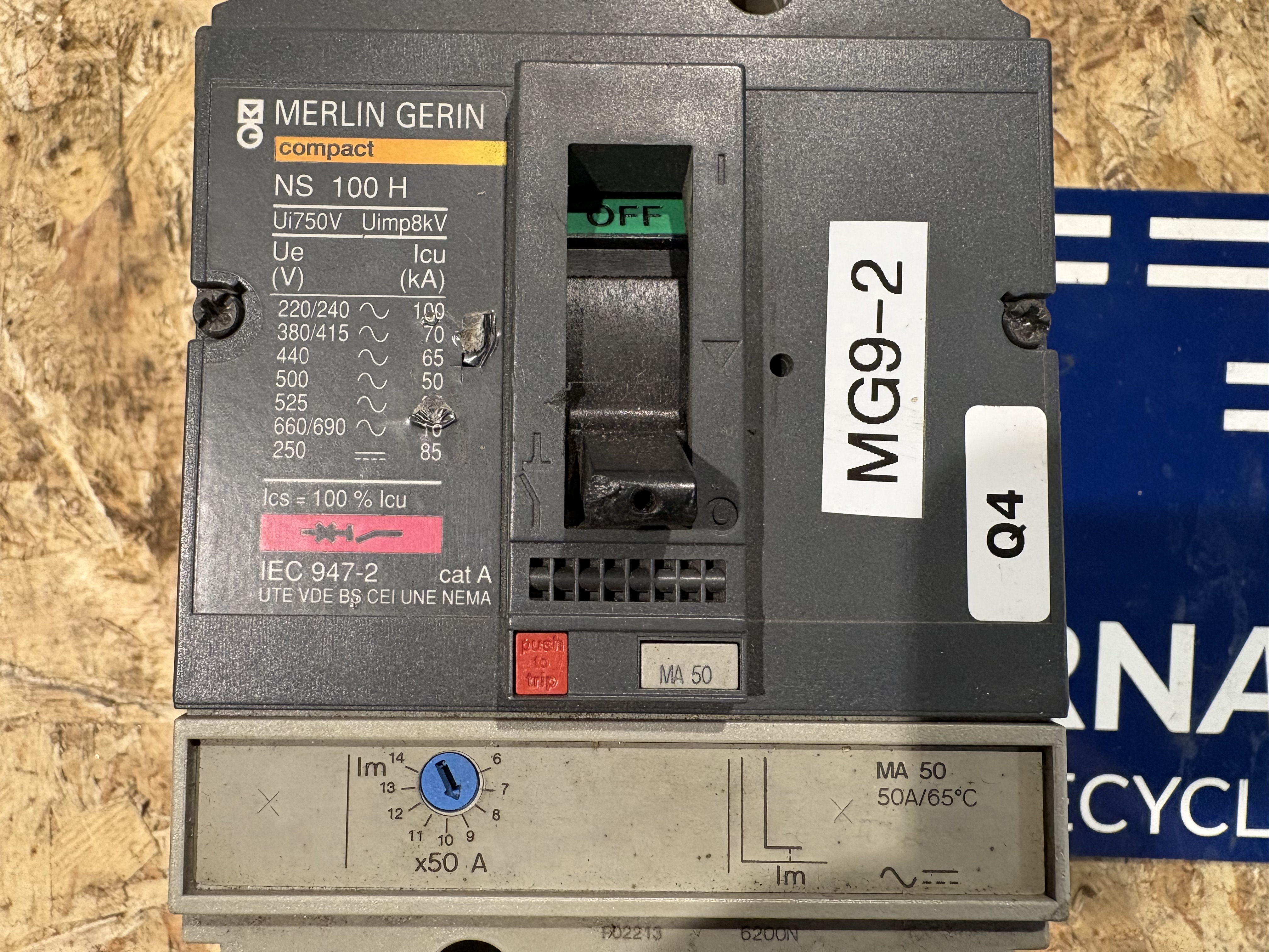 - Remark Merlin Gerin Compact . NS100H . MA50. UIN 750V . 50/60 HZ . UIMP : 8 KV .