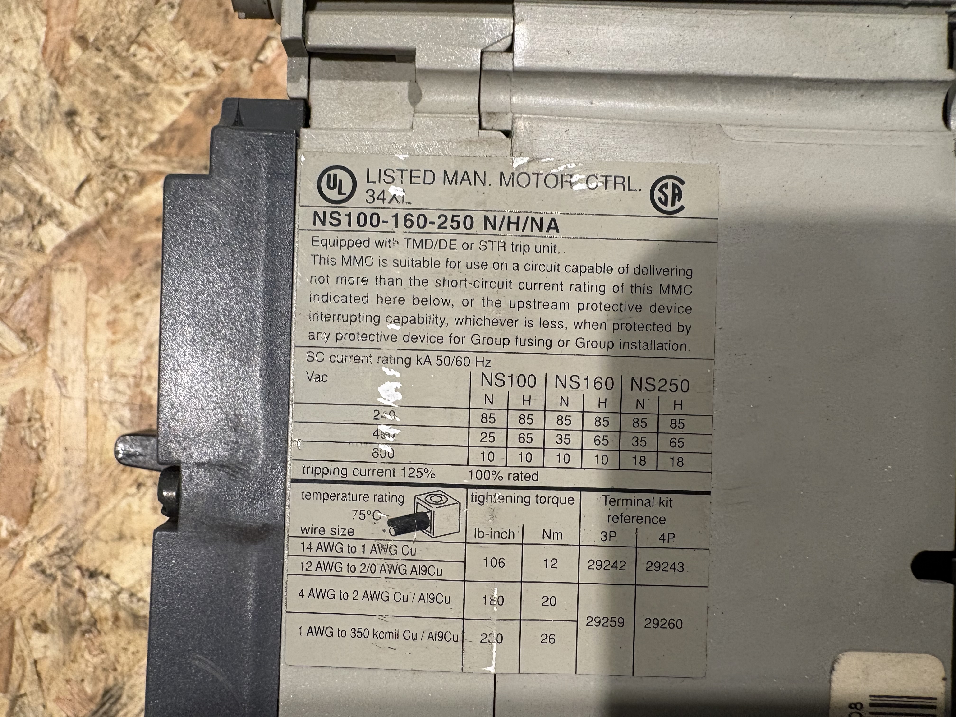 - Remark Merlin Gerin Compact . NS100H . MA50. UIN 750V . 50/60 HZ . UIMP : 8 KV .