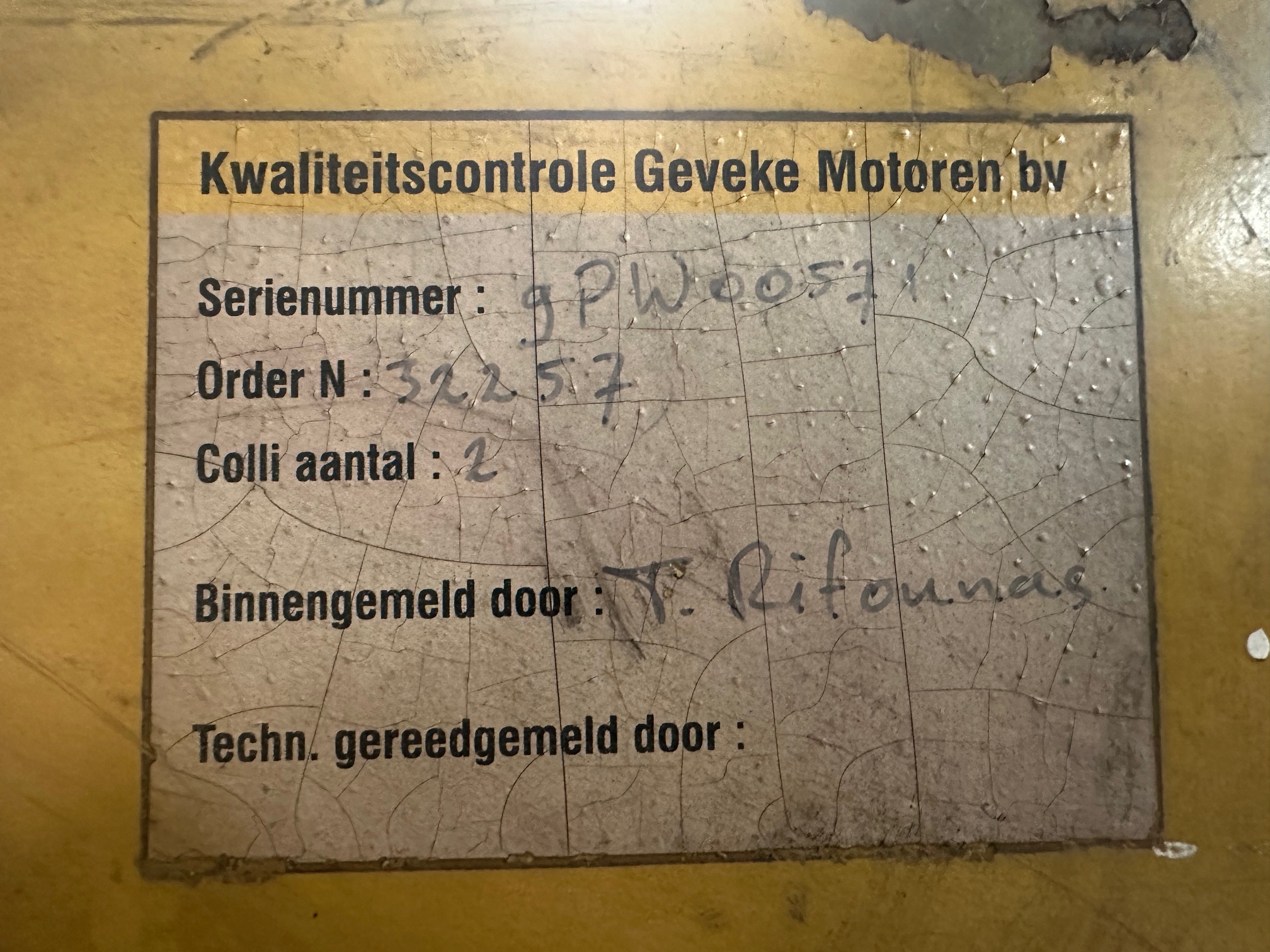 - Engine No. 9PW00571, Ar no. 183-3882