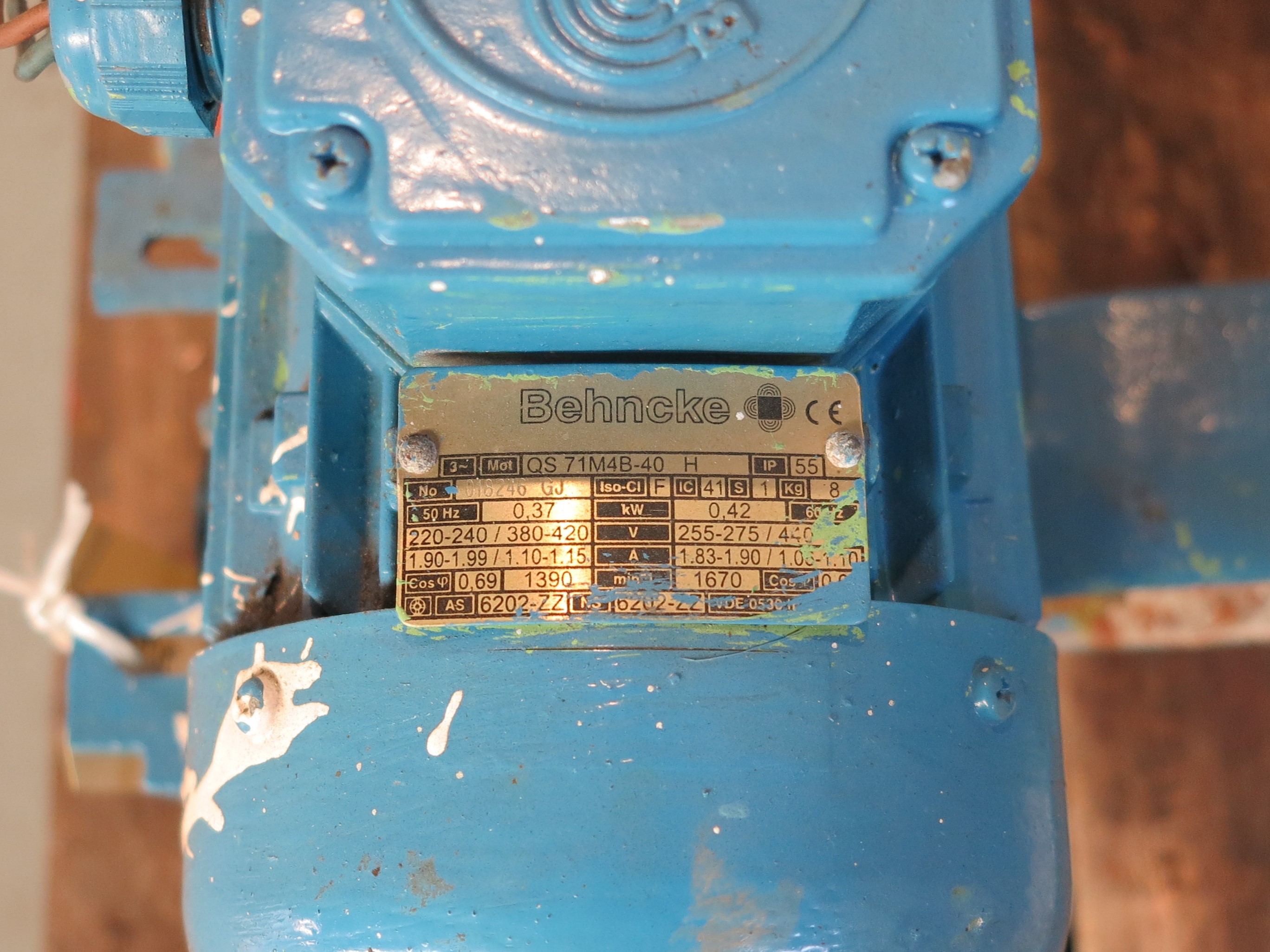 - Elmotor Behncke50 Hz, 0,37 kW, 220/380 V