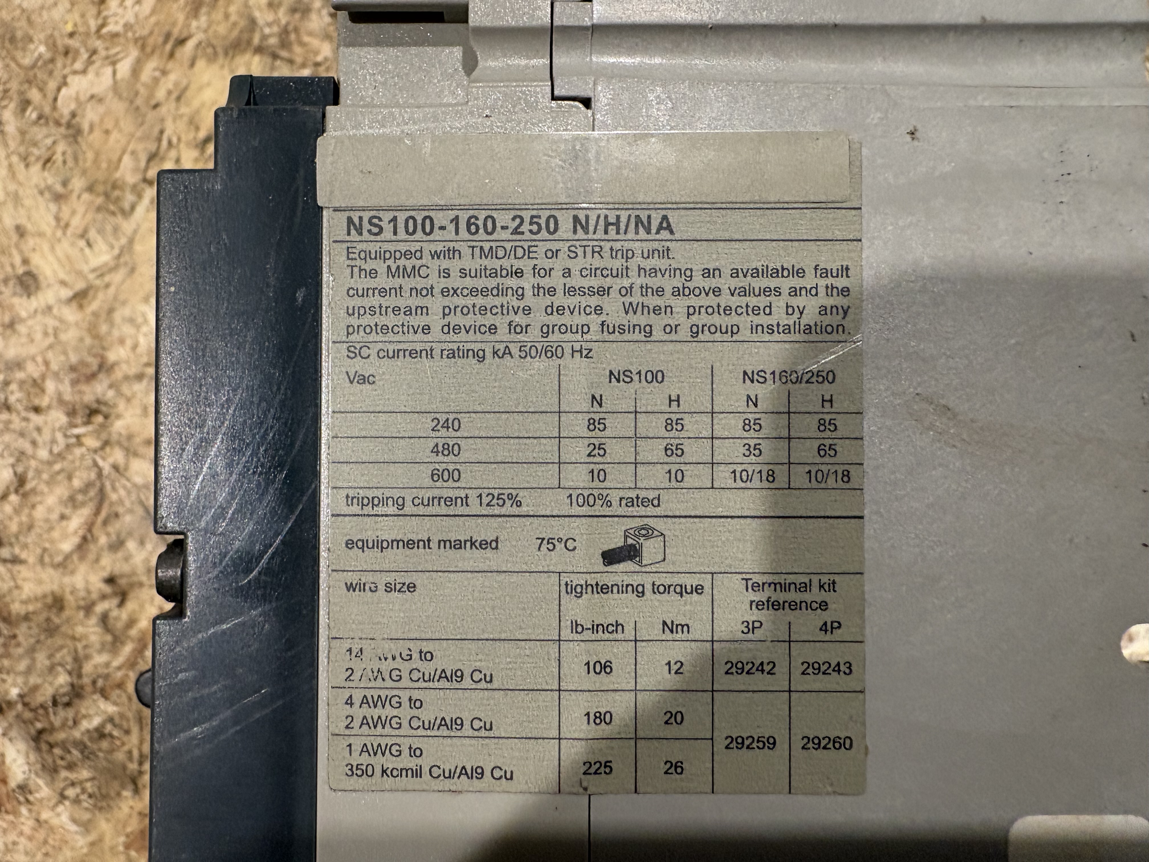 - Remark Merlin Gerin Compact . NS100H . MA50. UIN 750V . 50/60 HZ . UIMP : 8 KV .