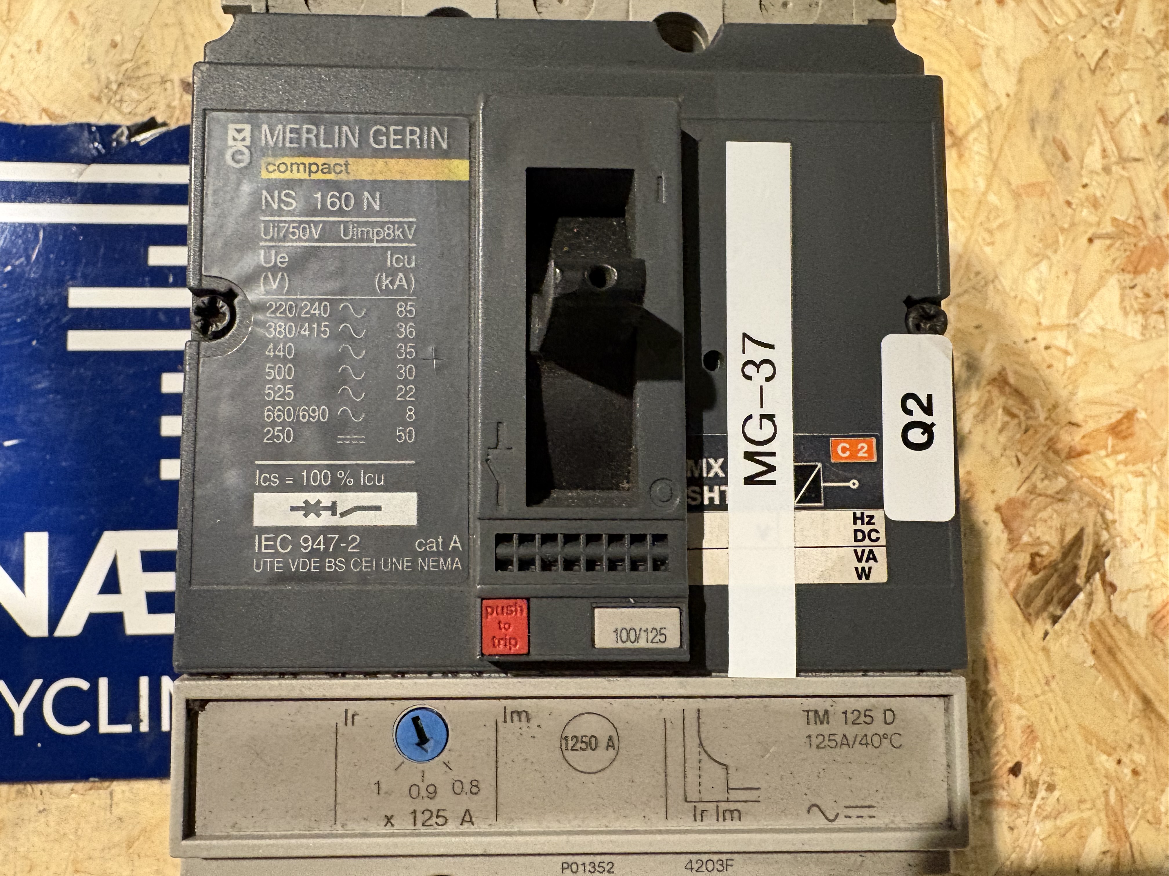 - Remark Merlin Gerin Compact . NS 160N . Tm125 D . IM 1250 A . TM 250 D. UIN 750V . 50/60 HZ . UIMP : 8 KV .