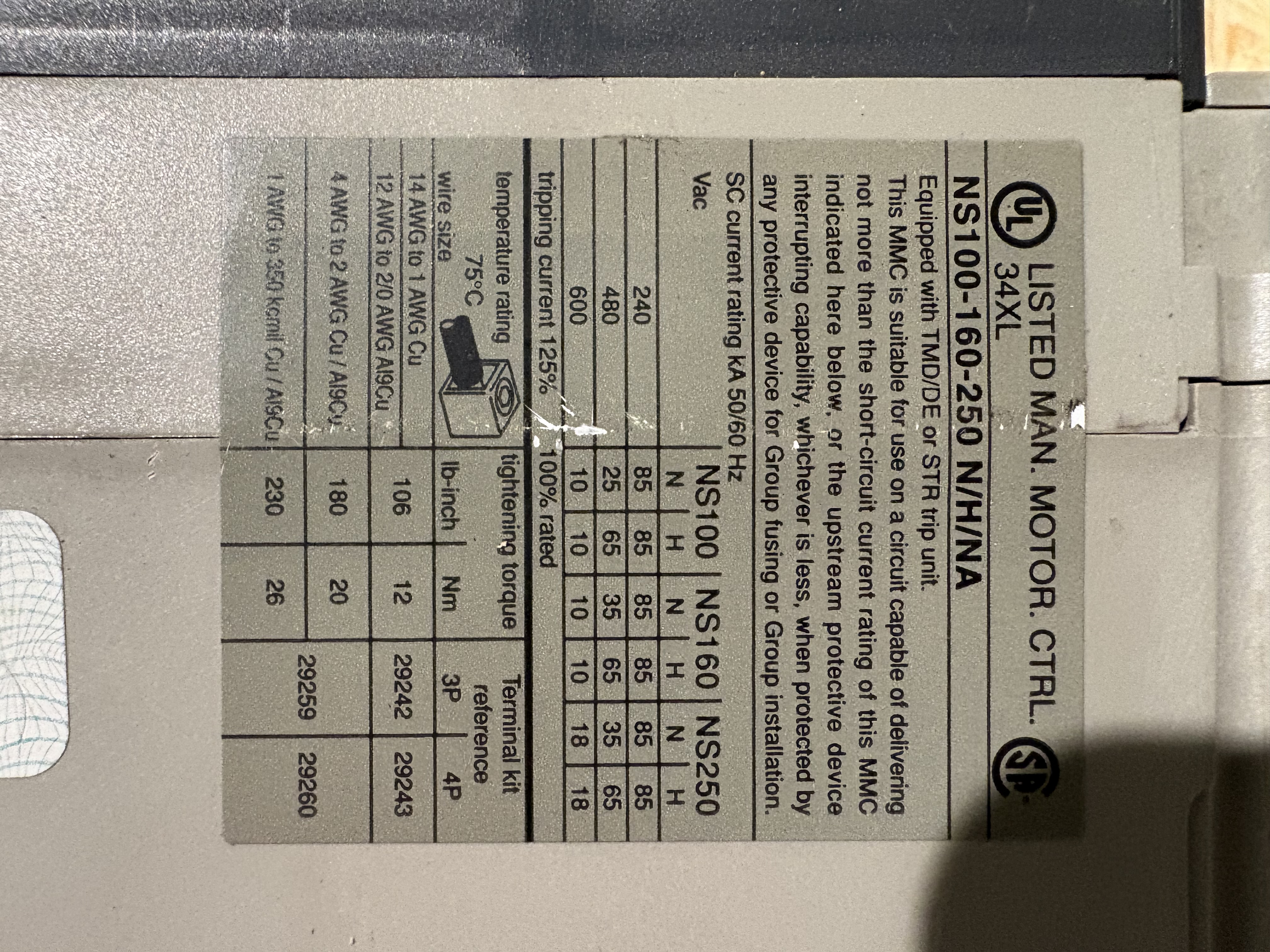 - Remark Merlin Gerin Compact . NS100H . TM80 D . UIN 750V . 50/60 HZ . UIMP : 8 KV .