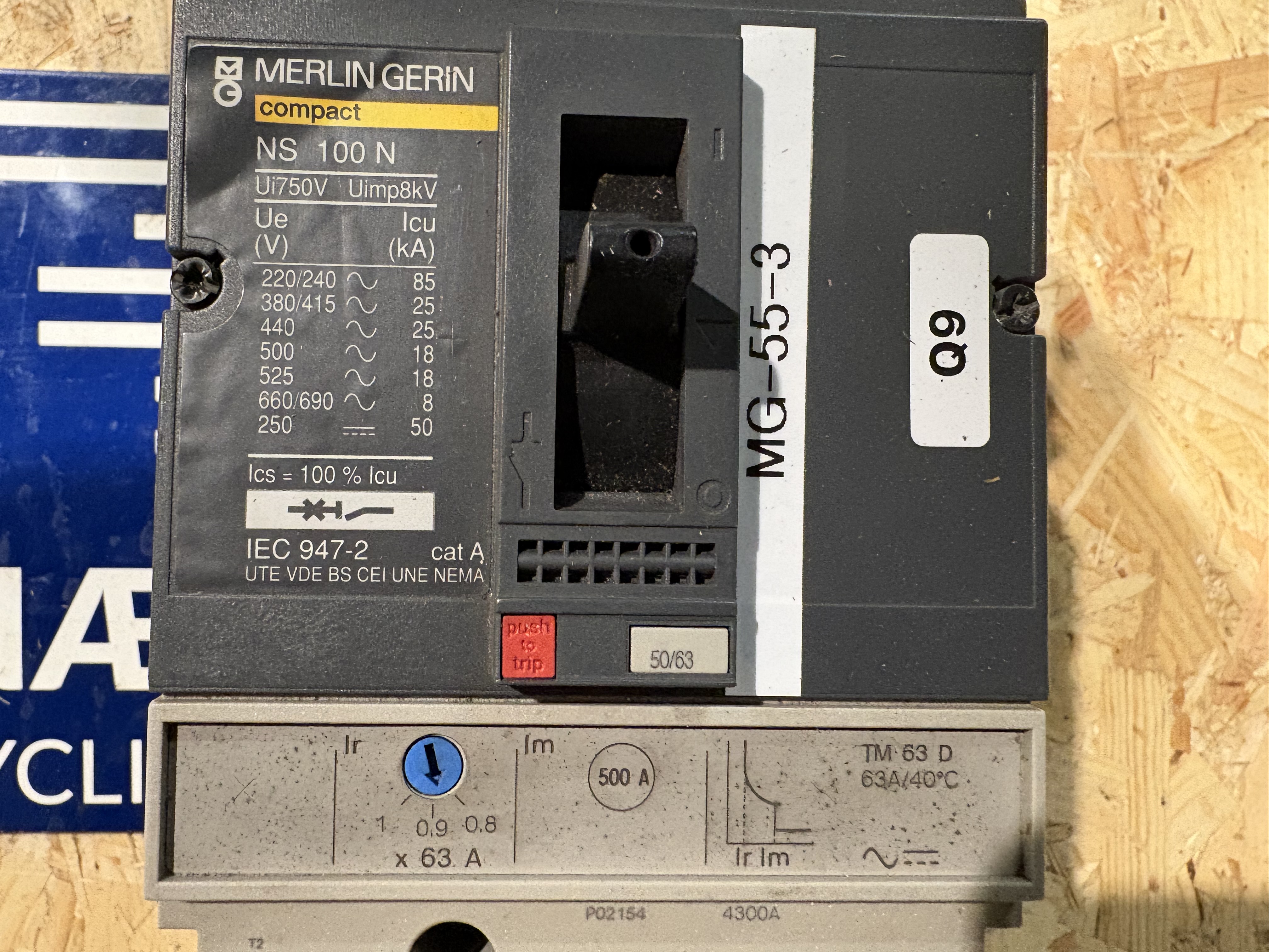 • Remark Merlin Gerin Compact . NS100N . TM63D. UIN 750V . 50/60 HZ . UIMP : 8 KV .