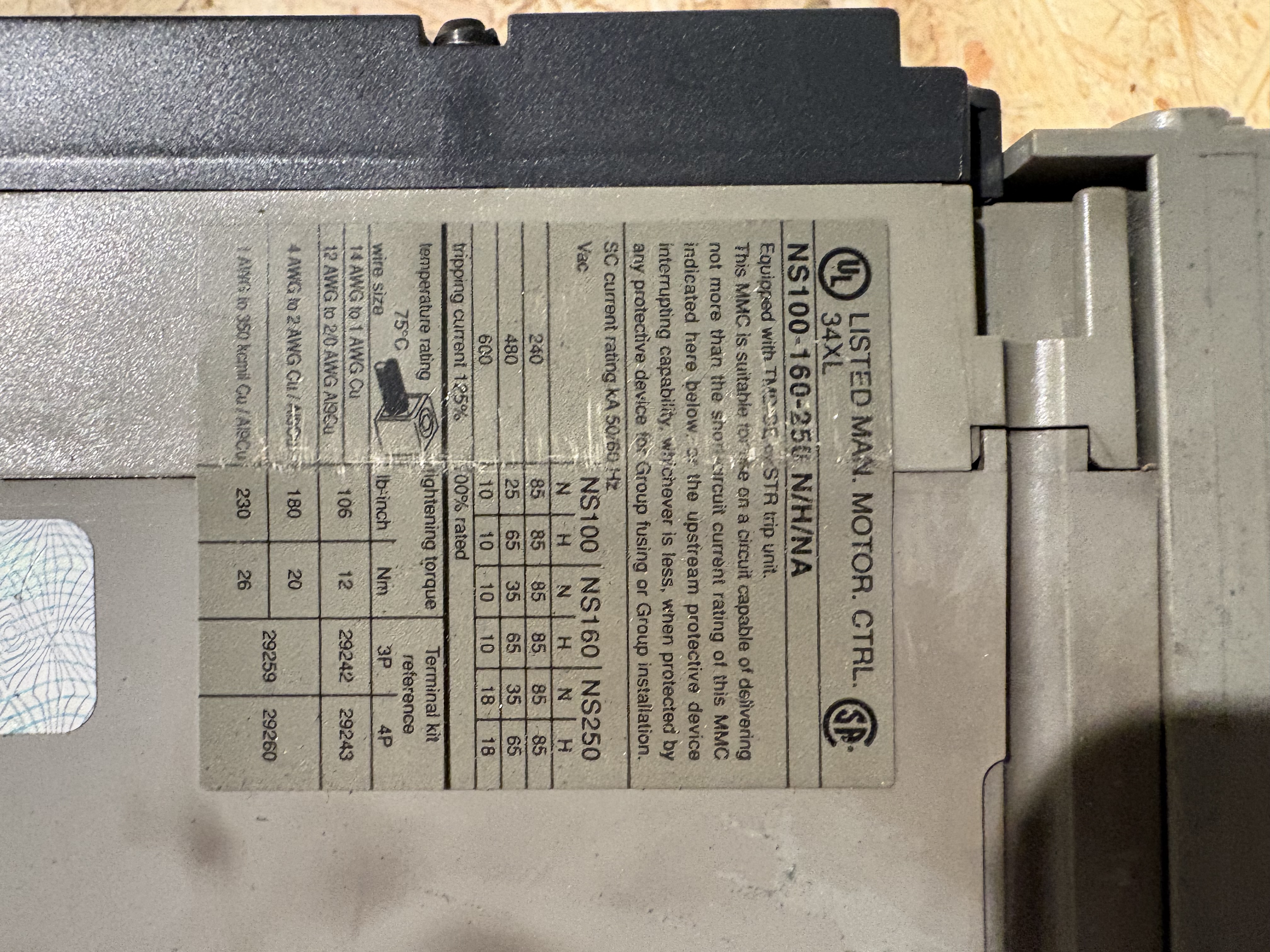 - Remark Merlin Gerin Compact . NS160H . Tm125 D . IM 1250 A . UIN 750V . 50/60 HZ . UIMP : 8 KV .