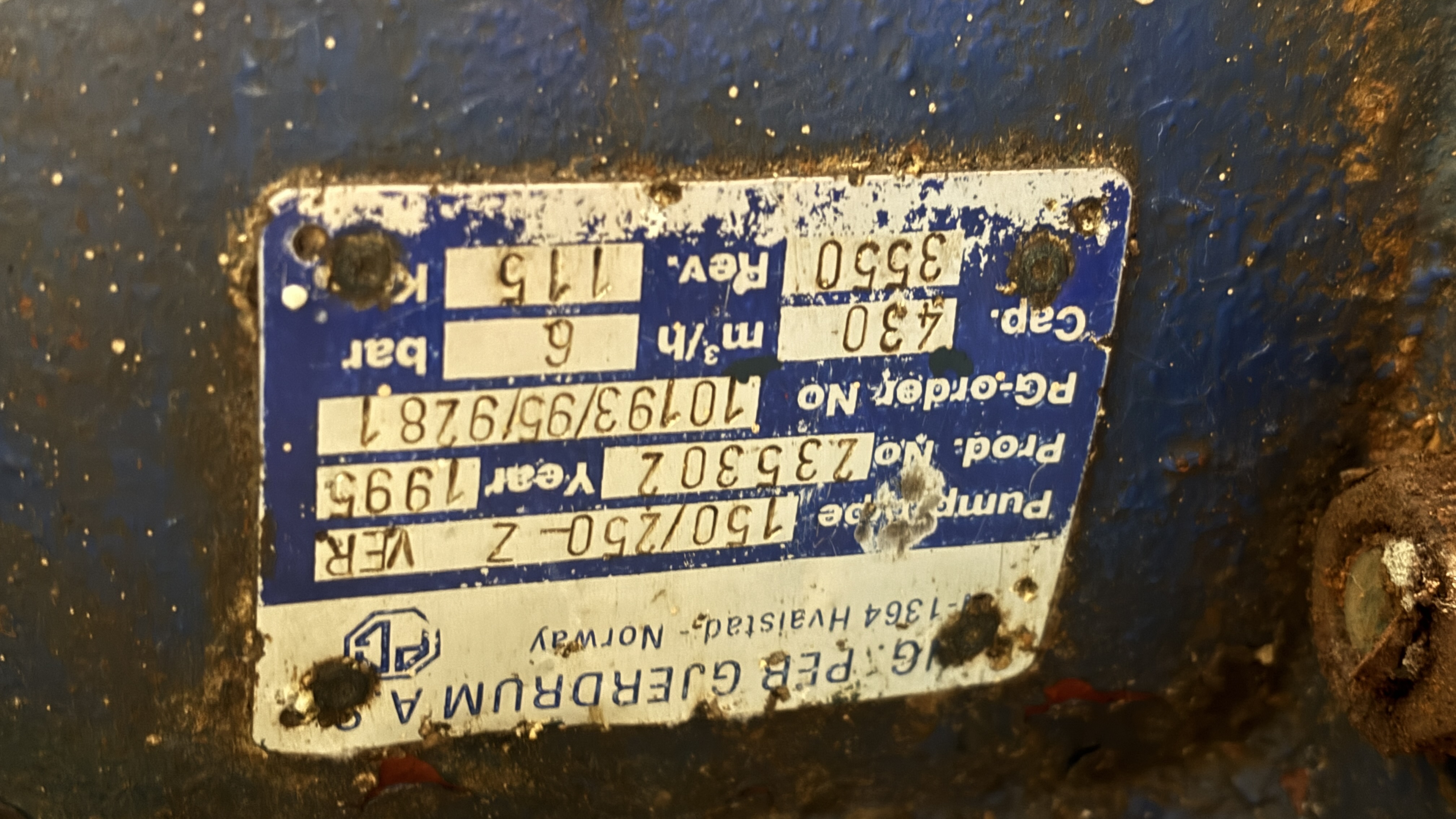 - Remarks 430 m3/hrs. 6 Bar