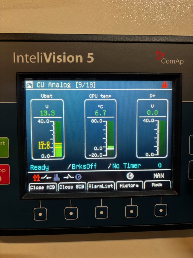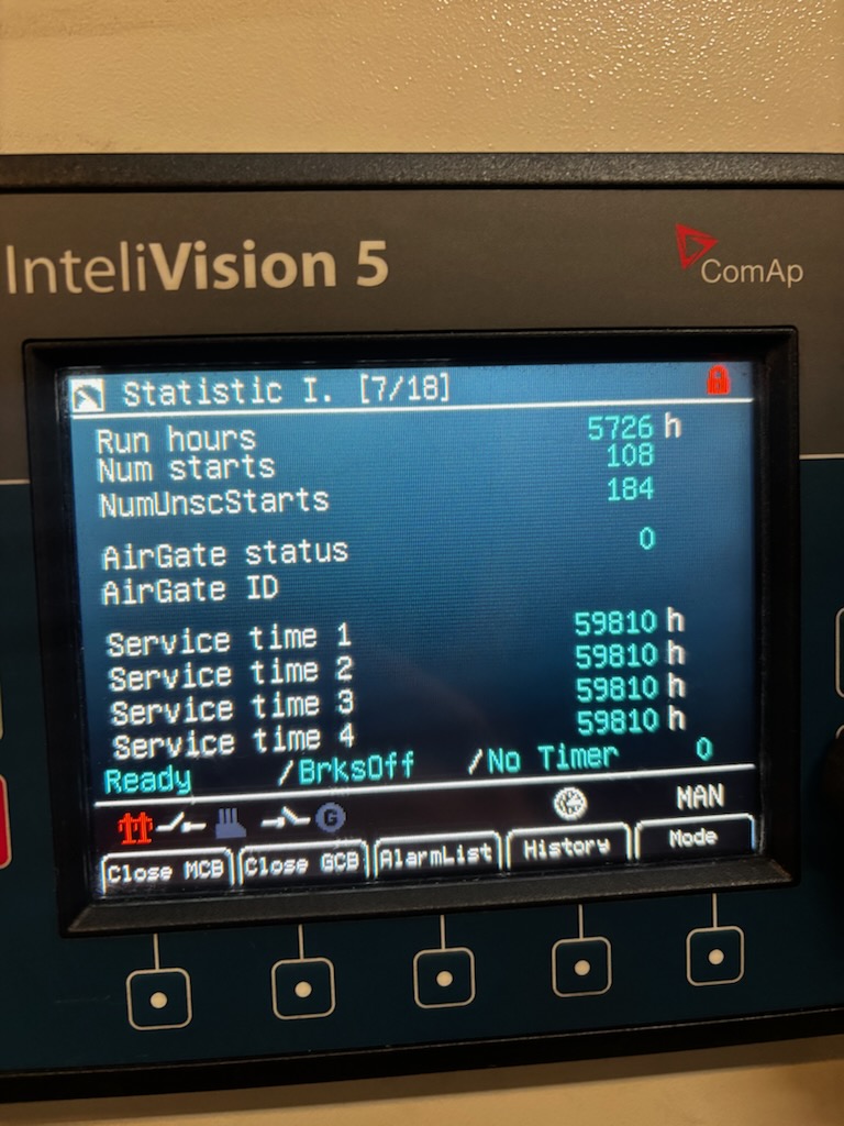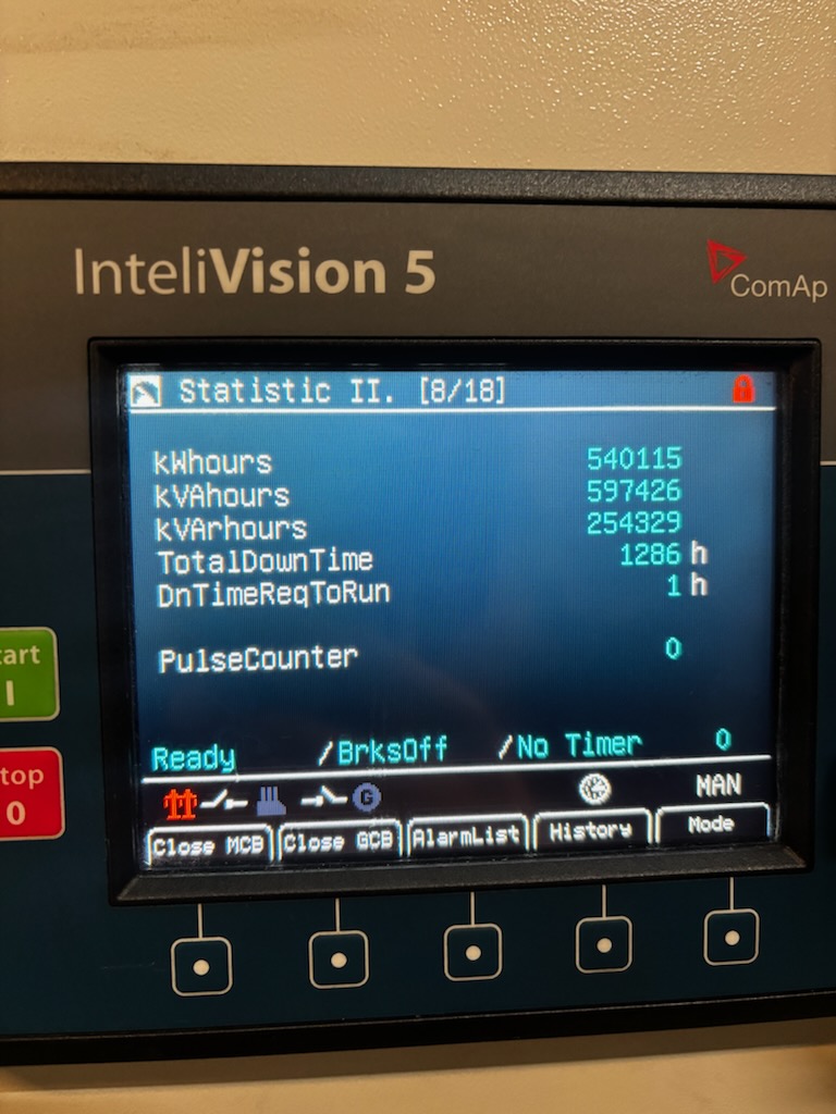 - Remarks Running hours: 5726, Year: 2008, ComAp InteliVision 5, Primepower: 400 KVA, 400 V, 50 Hz. Consumption: 81 l/h. Size: 3360 * 1150 * 2110 mm, dry weight: 3700 kg. Tank capasity: 650 liters.